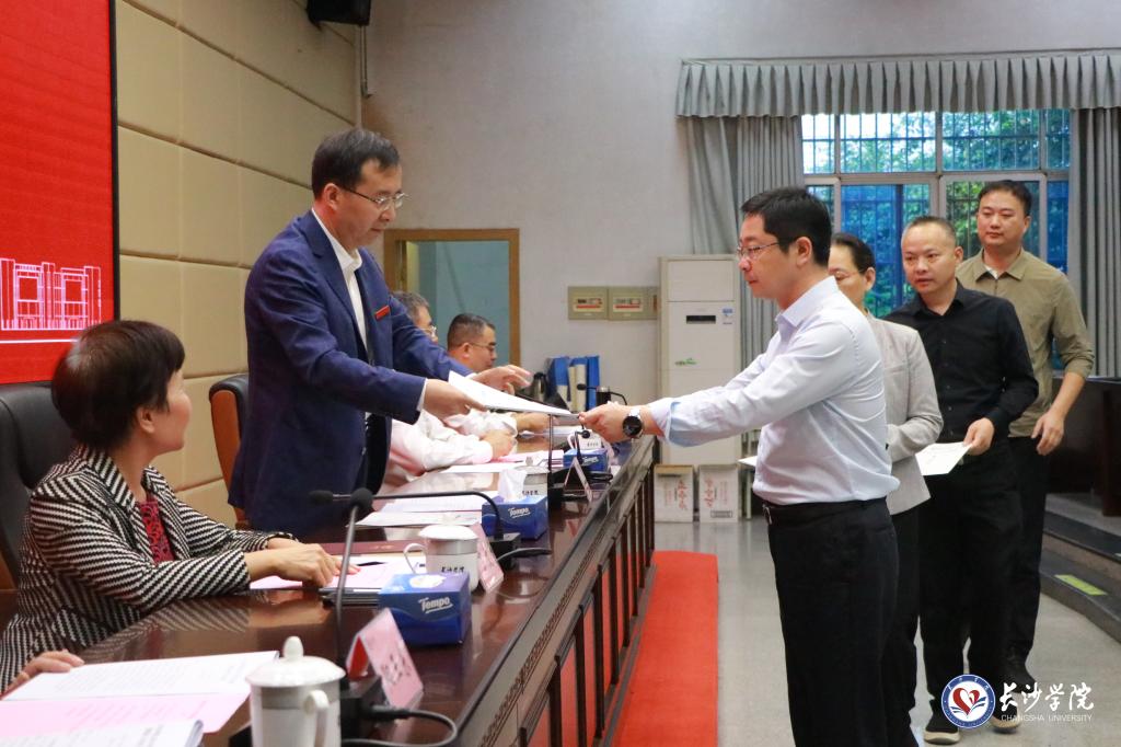 会上,各职能部门和二级学院负责人向学校递交了《二级单位维稳综治安全管理目标责任书》。