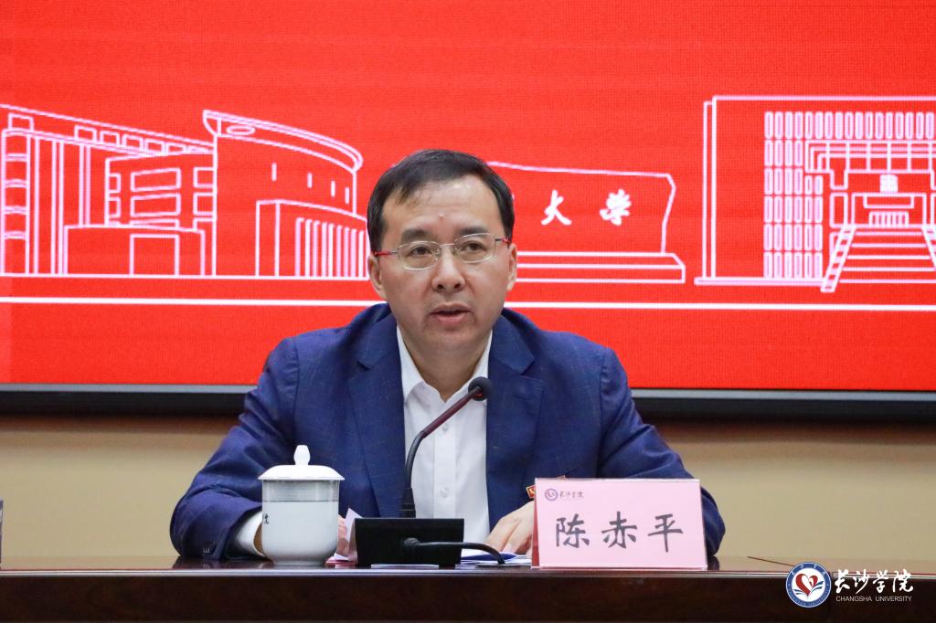 陈赤平充分肯定了全体师生为学校平安建设和武装工作所付出的辛勤和取得的成效。他指出,安全稳定是学校实现高质量发展的基石,必须长抓不懈。就持续做好校园综合治理和平安校园建设,他提出三点意见:一是提高政治站位,增强做好安全稳定工作的责任感、使命感、紧迫感。要坚持贯彻总体国家安全观,把维护政治安全摆在突出位置,始终把师生生命安全放在首位,以“时时放心不下”的责任感,切实守护好校园安全稳定。二是聚焦薄弱环节,提升安全稳定工作全面性、精准性、实效性。要树牢系统思维、底线思维,将安全责任内化于心、外化于行,切实把责任稳稳扛在肩头、牢牢抓在手中,把安全稳定工作与业务工作同部署、同推进、同落实、同考核,不断提升学校安全稳定工作全面性、精准性、实效性。三是落细落实措施,筑牢师生平安的防护网、保障网、安心网。要不断优化校园安全基础设施布局,强化科技赋能校园安全,提升安全管理的效率与精准度;要充分发挥安全宣传教育作用,构建全方位、多层次、持续性的安全教育体系,让安全意识深入人心。