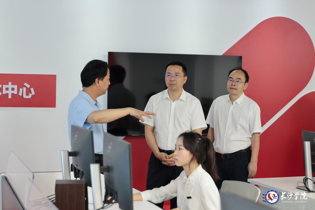 长沙市委组织部副部长、市委编办主任孙进,长沙市委组织部副部长傅永超,长沙市人社局党组成员、副局长邓勇,长沙市教育局党委委员、总督学周灿,长沙市委组织部干部四处处长周智武、高层次人才中心副主任刘行婕,学校党政办、人事处、教务处、科技处等职能部门主要负责人参加调研。