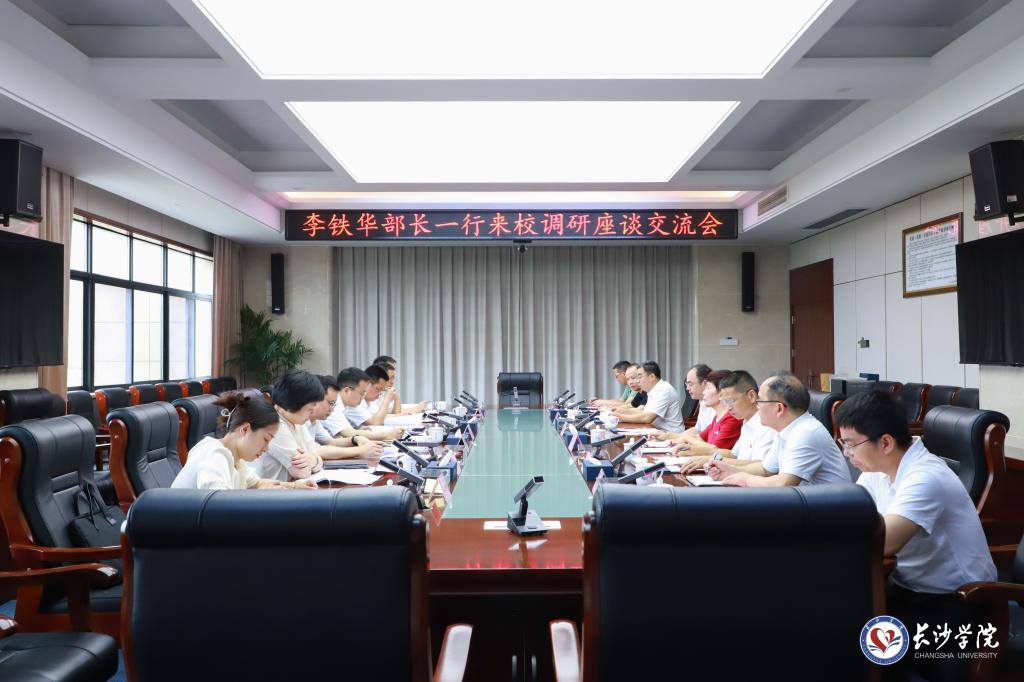 5月22日,长沙市委常委、组织部部长李铁华一行到中欧体育·(ZO SPORTS)官方网站调研。党委书记杨小云,党委委员、纪委书记丁文,党委委员、副校长何利华陪同调研并出席座谈会。