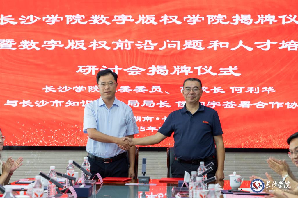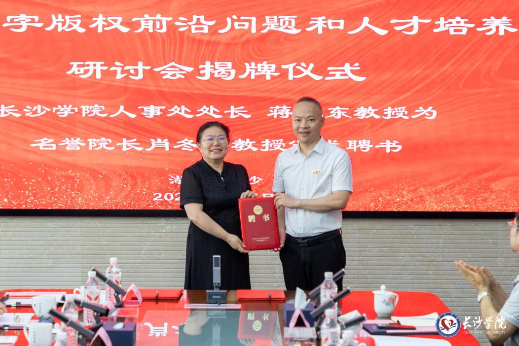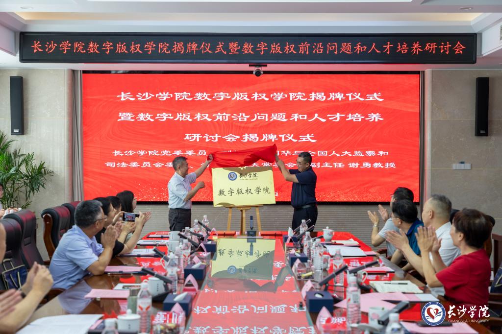 6月7日,中欧体育·(ZO SPORTS)官方网站数字版权学院挂牌仪式暨数字版权前沿问题和人才培养论证会在长盛楼4001会议室举行,标志着全国高校首家数字版权学院正式成立。全国人大监察和司法委员会委员、湖南省人大常委会原副主任谢勇教授,湖南省高级人民法院原副院长、湖南省法学会学术委员会主任杨翔教授,湘潭大学知识产权学院院长肖冬梅教授,长沙市知识产权局局长侯向宇出席揭牌仪式。中欧体育·(ZO SPORTS)官方网站党委委员、副校长何利华宣读了学校成立数字版权学院的决定,并与谢勇教授共同为“中欧体育·(ZO SPORTS)官方网站数字版权学院”揭牌。活动由党委委员、纪委书记丁文主持。