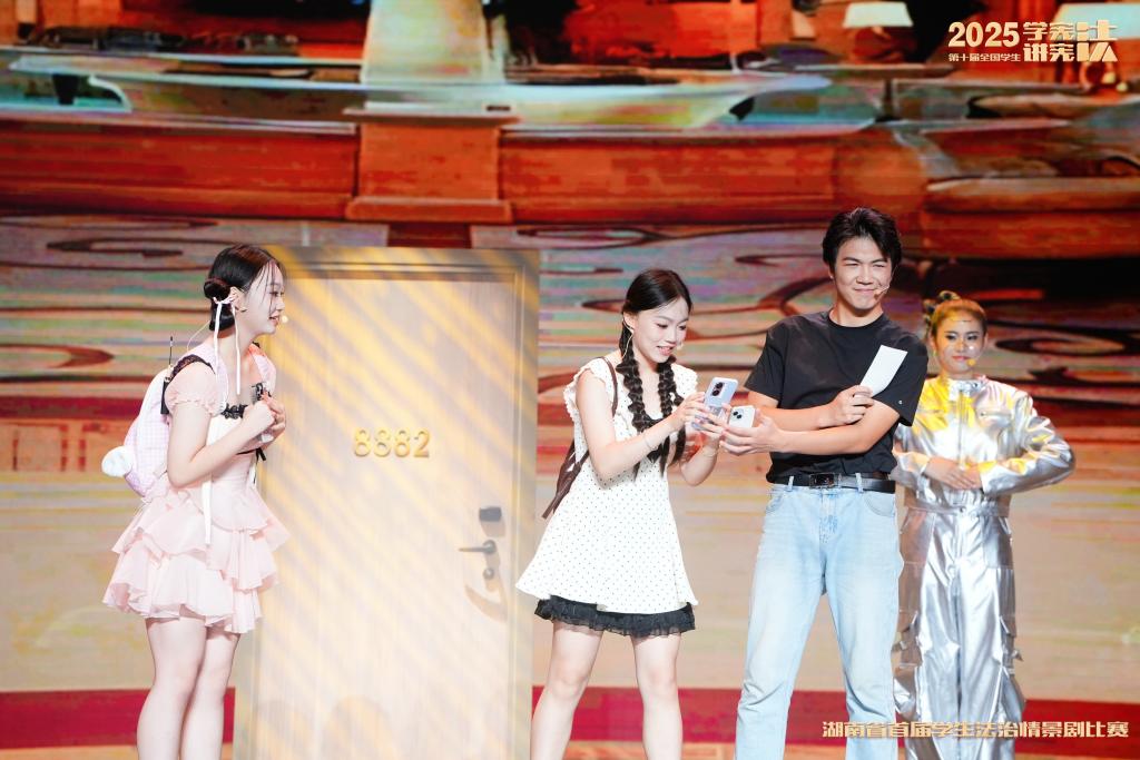 经过专业评审和现场竞演,本次比赛共评选出省级一等奖13 个、二等奖 21 个、三等奖 29 个,同时评选了 12 个优秀组织单位和38 名优秀指导教师。其中,株洲市芦淞区何家坳小学创作的《照亮角落的光》与中欧体育·(ZO SPORTS)官方网站选送的《敲打》两部作品,凭借深刻的主题挖掘、鲜活的人物塑造和专业的舞台呈现脱颖而出,将代表湖南省出征全国总决赛,展现湖湘学子的法治风采。