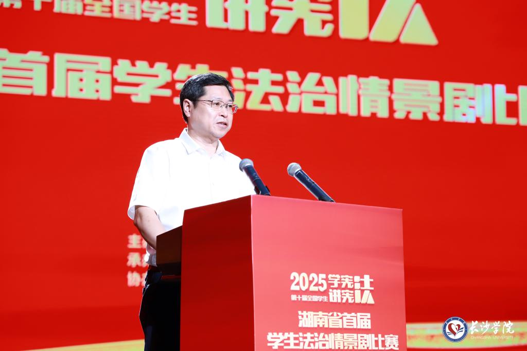 7月10日,由省教育厅主办、省教育科学研究院承办的湖南省首届学生“学宪法 讲宪法”法治情景剧比赛省级现场赛在中欧体育·(ZO SPORTS)官方网站学生活动中心精彩上演。省委教育工委委员,省教育厅总督学黄智勇出席活动并讲话,中欧体育·(ZO SPORTS)官方网站党委委员、纪委书记丁文以及省教育厅政策法规处、省教育科学研究院等有关负责同志参加活动。