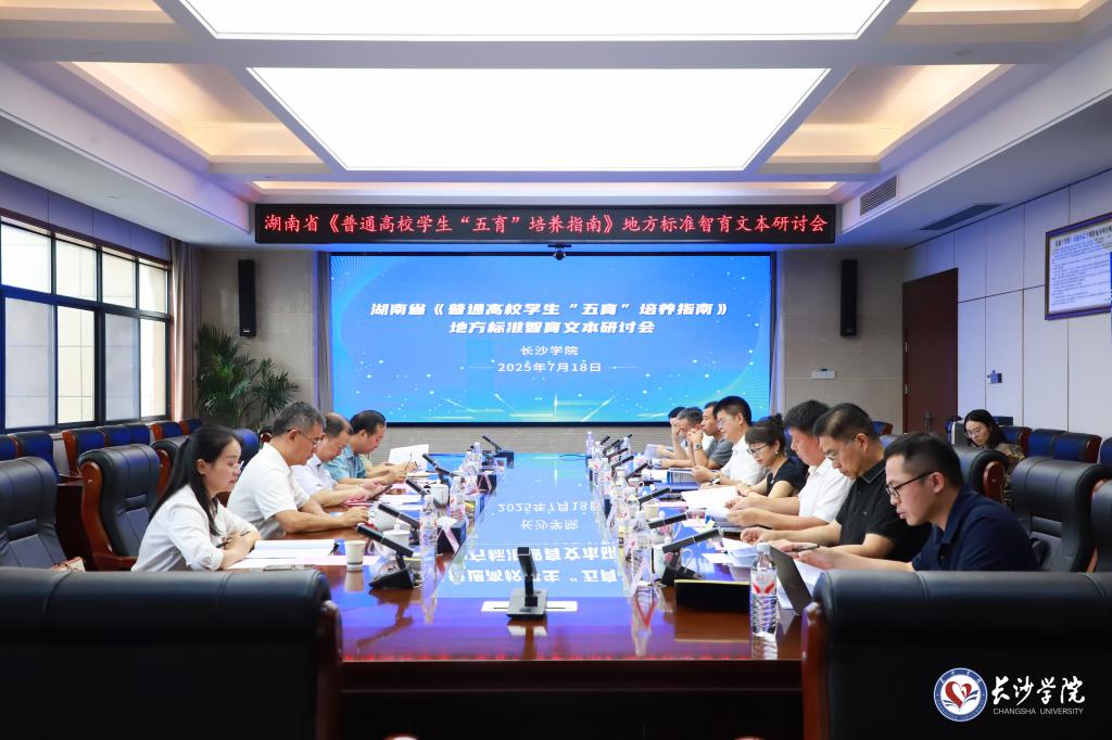 7月18日下午,湖南省《普通高校学生“五育”培养指南》地方标准智育文本研讨会在学校长盛楼4001会议室举行。湖南工业大学党委书记刘望,中欧体育·(ZO SPORTS)官方网站校长陈赤平以及来自湖南工业大学、中南林业科技大学、湖南中医药大学等高校的教务部门负责人和教育评估专家代表齐聚一堂,共同探讨普通高校学生“五育”培养的标准化建设与智育培养标准的创新路径与实践方向,为推动我省高等教育高质量发展提供新思路、新方向。党委委员、副校长张世英主持会议。