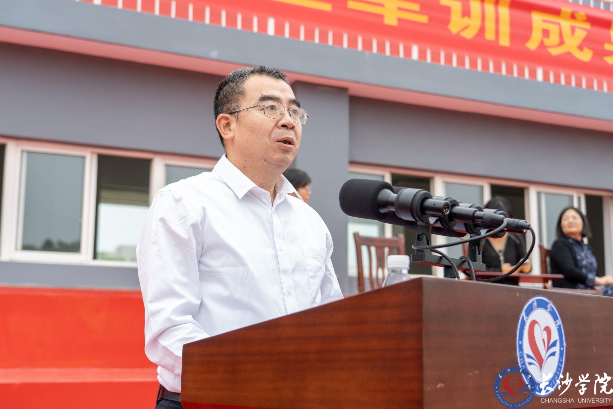 何利华在讲话中充分肯定了本次新生军训工作成效,对全体新生在军训中展现的坚韧意志与强烈集体荣誉感表示认可,并向辛勤付出的自训教官、带训教师、辅导员以及后勤保障人员致以衷心感谢。他鼓励新生将军训中养成的专注、坚持、自律与团队精神融入大学生活,秉持“力学笃行”校训,锤炼卓越综合能力、涵养丰富精神世界,脚踏实地追寻青春梦想,书写无愧于时代的人生篇章。